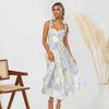 New slim fit and slim waisted V-neck strap printed mid length dress for women