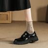 Loafers Leer Dames Zachte Leren Schoenen met Ronde Neus Britse Gouden Gesp Damesschoenen Blokhak Booster Schoenen