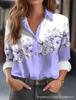Vrouwen Lente Vrouwen Herfst Lange Mouw Revers Knoopsluiting Bloemenprint Blouses Losse Shirt Dames Tops