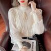 Lentekleding Nieuwe Franse Vintage Staande Kraag Lange Mouw Binnenkant Neem Kant Leggings Vrouwelijke Lente en Herfst Blouse