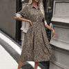 Herfst Dames Midi-lengte Lange Mouw Luipaardprint Jurk