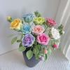 Finished Handmade Knitted Rose Artificial Flowers, Braided Fake Flower Crochet Bouquet Decoration, Table Ornament, Holiday Gifts