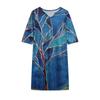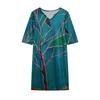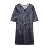 European Summer Leaf Print Rendered Fashion V-collar Mid-sleeve A-line Skirt Skirt