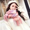 Women's Scarf Winter Thickening and Long Tassel Scarf Korean Color Plaid Knitted Scarf Shawl Dual-use