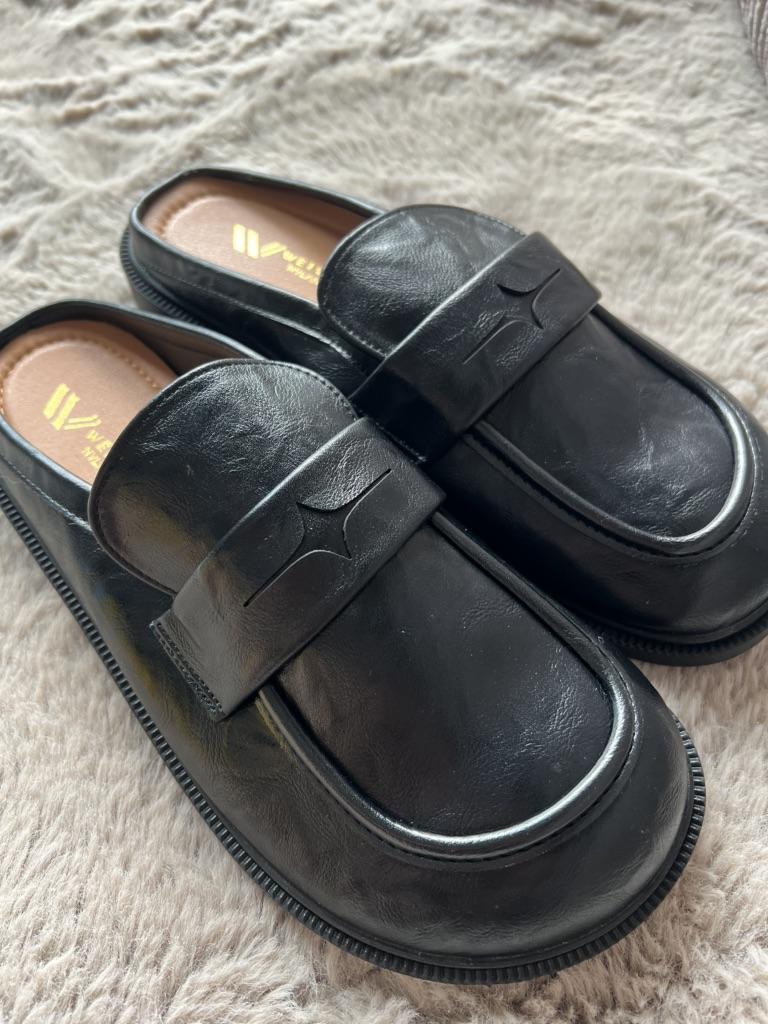 Kleine leren schoenen dames lente en herfst enkele schoenen een voetstoot Baotou halve pantoffels extern dragen retro sandalen pantoffels