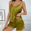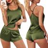 Elegant ontwerp: Deze tweedelige pyjamaset straalt elegantie uit met zijn O-hals, jarreteltop en verstelbare lengte. Het kruisvormige rugontwerp voegt een vleugje charme toe, waardoor het geschikt is voor mensen met elk lichaamstype.