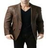 New Handmade Party Formal Stylish Blazer Business Brown Lambskin 100%Leather Men