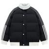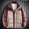 Winter Nieuw: Katoenen gewatteerde jas met drie contrasterende strepen voor heren en dames, met dikke, warme opstaande kraag.