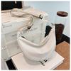 Dames schoudertas met ritssluiting in effen kleur, model 'dumpling bun', casual canvas schoudertas met verstelbare band.