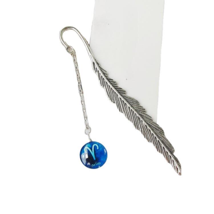Creatieve Lichtgevende Boekenlegger Twaalf Sterrenbeelden Hanger Metaal Retro Blad Pagina-markeerder met Cadeau