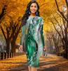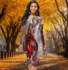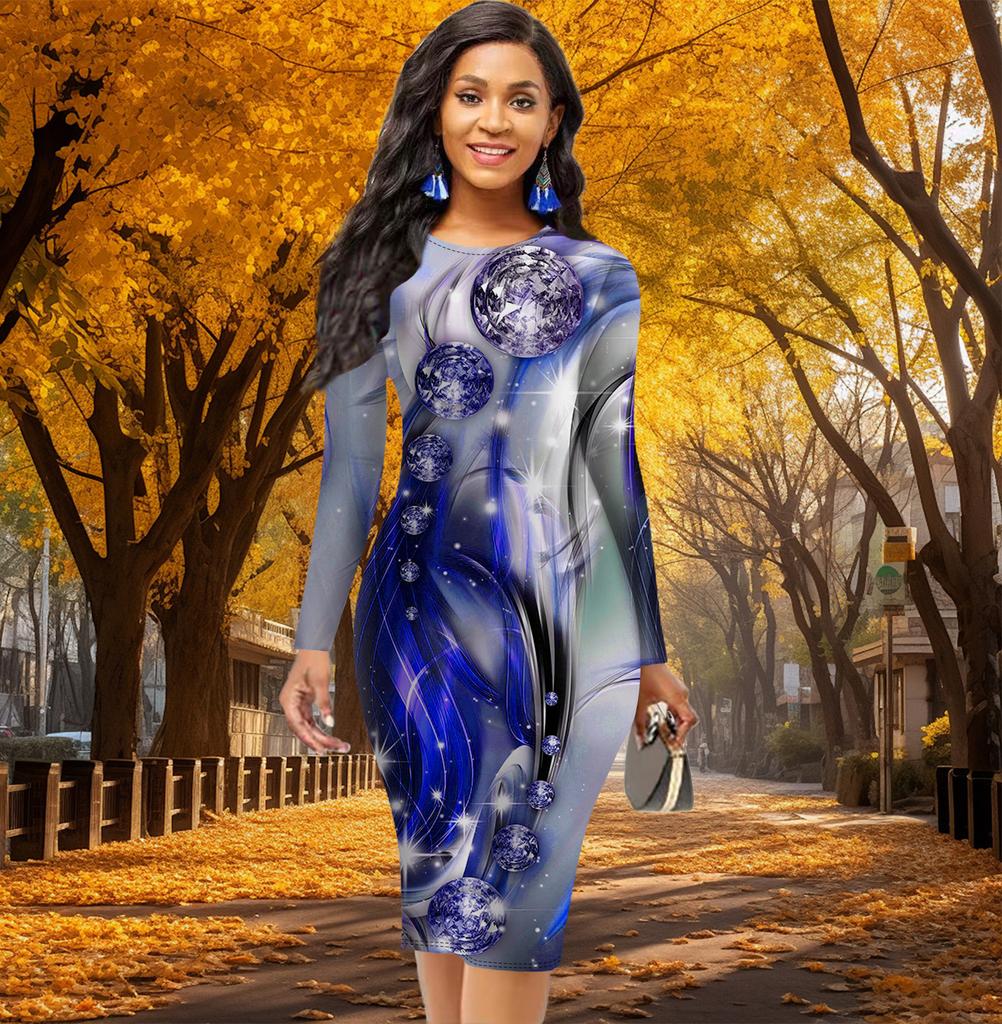 Long Sleeve Waist Tight Office Slim Fit Fashion Pearl Printing Elegant Bodycon Dress