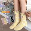 Socks Women Winter Warm Fluffy Fuzzy Cute Middle Tube Thick Thermal Soft Coral Fleece Floor Sleep Cartoon Star Short Crew Socks