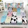 Nieuwe Schattige Kat Hoeslaken Set Stofdicht Antislip Alle Seizoenen Matrasbeschermer Zachte Ademende Beddengoedset Met Diepe Zak