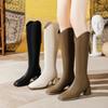 Grote Maat Nieuwe Dameslaarzen Rits Dikke Hoge Hakken Eenvoudige Herfst Winter Laarzen Kniehoog Botas