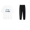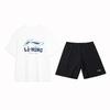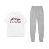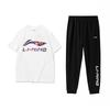 Li-Ning Loose Breathable Letter Logo Round Neck Pullover Short Sleeve T-Shirt Solid Color Cuffed Casual Sports Suit Men Tops AHSSE01-1+AYKS785-1