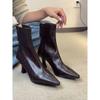 Women's High Heel Short Boots 2024 Autumn/Winter New Style Women's Square Heel Style Zipper Pointed Elastic Thin Tube Boots