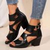 Mode 2024 Nieuwe Zwarte Dikkere Hak Dames Sandalen High-top Plus Size 43 Dames Mode Schoenen leer Vierkante Neus Sandalias De Tacon