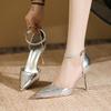 Mode Schoenen Vrouw 2024 Hoge Kwaliteit Enkelbandje Vrouwen Sandalen Zomer Puntige Teen Gesp Jurk Stiletto's of Dunne Hakken Lage Sandalen