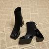 Dames Hoge Hakken Enkel Sneeuwlaarzen Fad Vierkante Neus Schoenen Winter Suède Pluche Warme Schoenen Vrouw 2025 Trend Elegante Pumps Botas Mujer