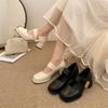 Grote Maat Ondiepe Mond Enkele Schoenen Dames Lente Vierkante Neus Platte Zool Woord Met Dikke Hak Dames Schoenen Mary Jane Kleine Leren Schoenen