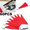 10 PCS Set Christmas Hat Silverware Holder Xmas Mini Red Santa Claus Cutlery Bag Party Decor Gift ADM