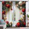 2 stuks Rode Kerst Bedrukte Semi-Verduisterende Gordijnen met Groene Takken en Gouden Ballen Drapes voor Woonkamer Slaapkamer