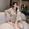 Nieuwe Winterpyjama voor Dames, Fleece Voering, Verdikt High-end Zijde Satijn Effen Kleur Huispak Set