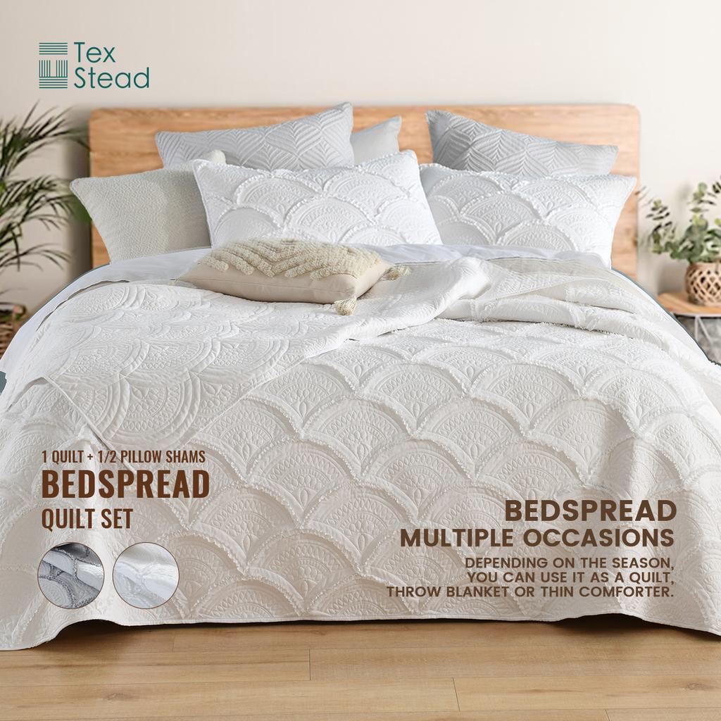 3 Pieces Tufted Bed in a Bag Comforter Set Soft and Embroidery Shabby Chic Boho Bohemian Solid Color Quilt, for All Season