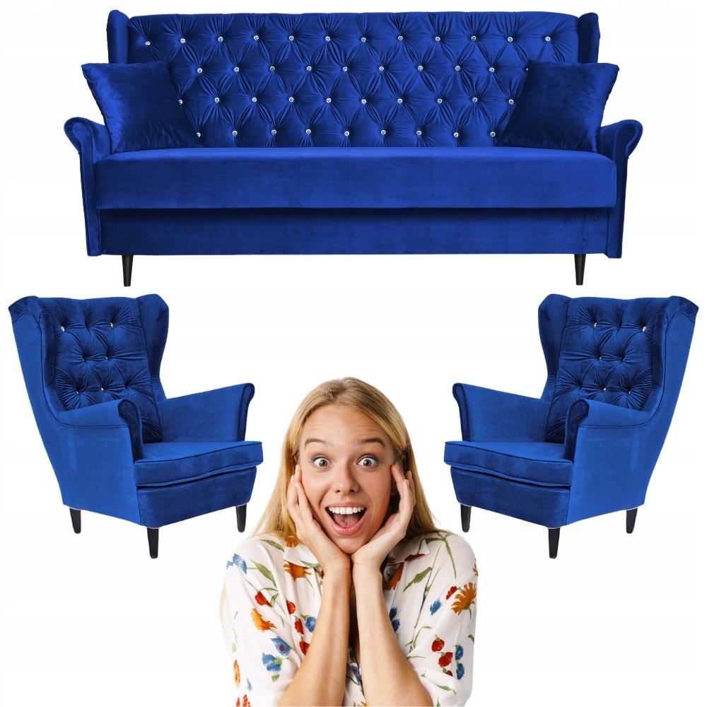 Zestaw wypoczynkowy z fotelami wersalka uszak NIEBIESKI Family Meble