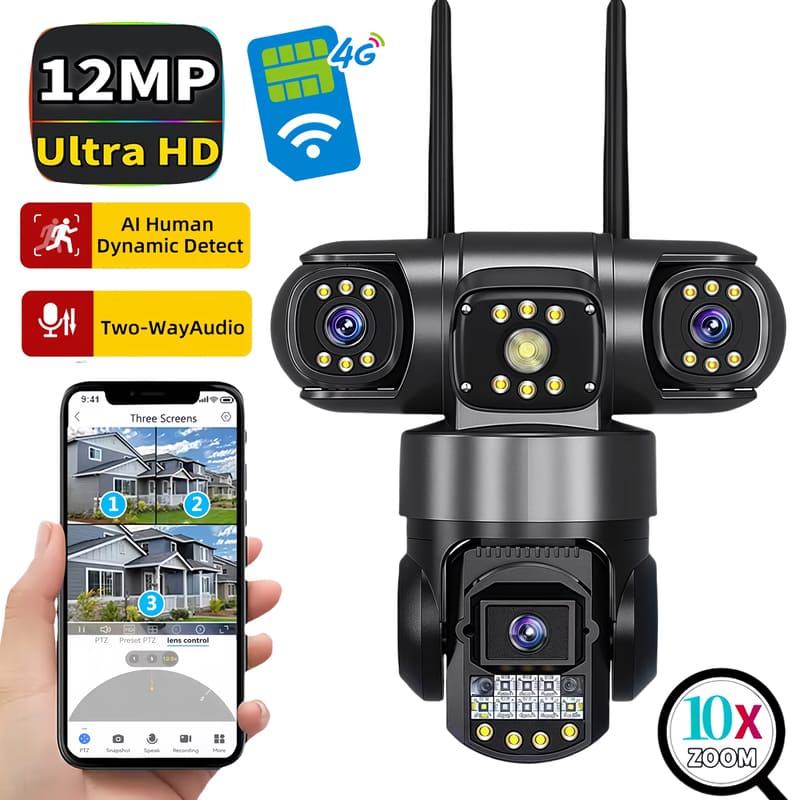 6K-resolutie: De pixels van elke lens zijn 4 MP, 4 MP lens + 4 MP lens + 4 MP lens = 12 MP 6K.