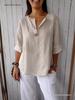 Introducing the Women's Loose Fit V-Neck Long-Sleeve Shirt, a versatile and chic addition to any wardrobe. Crafted from high-quality polyester fiber, this shirt offers a light and breathable feel with a natural touch.