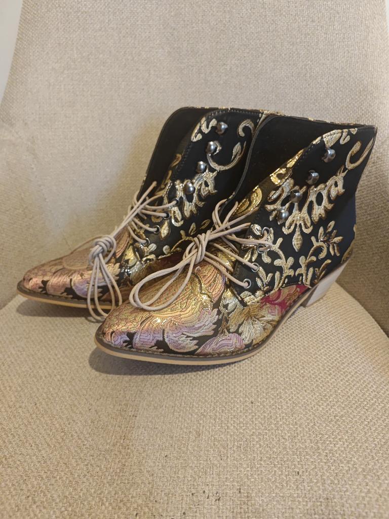 Puntige neus Borduurwerk Etnische Laarzen Dames Lage Hak Pumps Platform Rode Laarzen Moderne Designer Laarzen Plus Size Banket Dames Schoenen