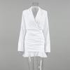 Witte Katoen en Linnen Slim Ruffles Rand Jurk Dames Slim Heupomsluitende Jurk Revers Lange Mouwen Mode Lente en Zomer