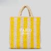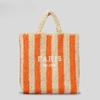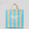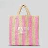 Gestreepte Handgemaakte Geweven Stro Tas Dames Geborduurde Letters Strand Vakantie Schoudertas Botsende Kleuren Papier Geweven Handtas
