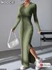 Dames Slim Feeling Effen Kleur Temperament Lang Pakket Heup Gloednieuwe Jurken