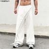 INCERUN Men High Elastic Waist Twisted Ruffled Casual Long Harem Pants Trousers