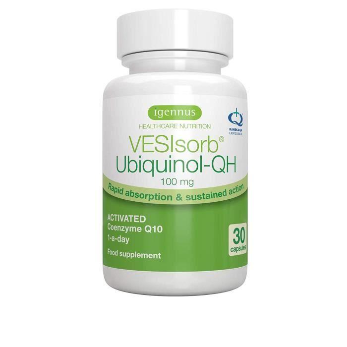 Vesisorb ubiquinol-qh coq10 100mg, coenzyme q10 sous forme active pour une absorption accrue, puissant antioxydant, 30 capsules