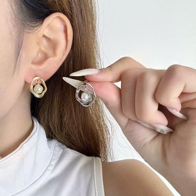 Luxe Retro Parel C-vormige Oorbellen voor Vrouwen - Onregelmatig Metalen Ontwerp, Beroemdheid Stijl