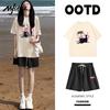 Academic style Casual sports suits for women summer Korean fashionable loose short-sleeved t shirt and shorts y2k Running two-piece set young girl