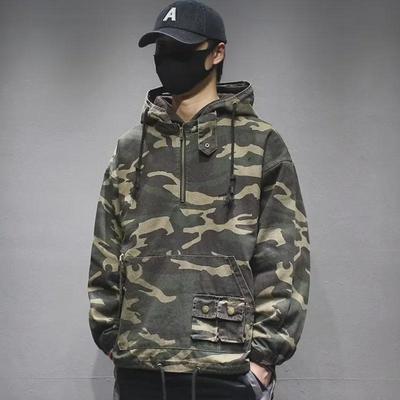 Retro Amerikaanse Camouflage Jas met Capuchon: Herfst & Winter Buitenkleding met Halve Rits