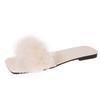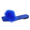 Lucyever Blauwe Zomer Platte Bontslipper Dames 2025 Zachte Zool Antislip Slides Schoenen Vrouw Mode Vierkante Neus Pluizige Slippers