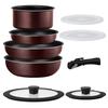 Inhoud instellen: 20cm koekenpan, 26cm koekenpan, 16cm kookpan, 20cm kookpan, eierpan, 16cm glazen deksel, 20cm glazen deksel, 16cm afsluitdeksel, 20cm afsluitdeksel, handvatten