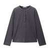 Gebogen Pure Nieuwe Stijl Halfopen Kraag Knoop Lange Mouw T-shirt voor Dames Slim Basis Shirt Schouder Top