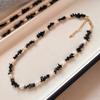 Luxe Zwarte Kristal Edelsteen Diner Ketting, Korte Accessoires