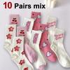 5/10 Paren Dames Cartoon Print Sokken tot Halve Kuit Modieuze Letters Kleine Bloemen Roze Kersenhart Zacht Comfortabel Casual Sokken