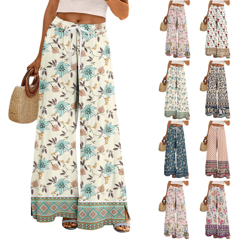Dames zomer boho palazzo broek met hoge taille, wijde pijpen en bloemenprint, casual broek met zakken