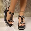 Zomer/Herfst Nieuwe Modieuze Strandvakantie Stijl Beige Sleehak Sandalen met Waterdruppels en Bloemdecoraties voor Vrouwen