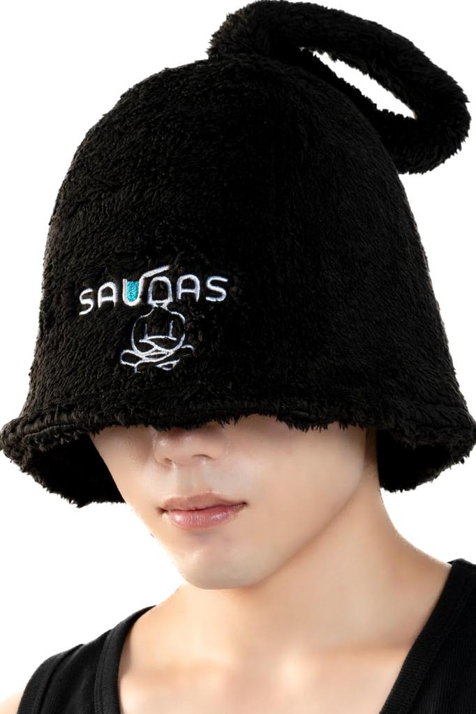 ✅【Men's Sauna Hat Black】 Saunas' sauna hat features cute embroidery on fluffy black towel fabric. This stylish and cute black men's sauna hat is a meditation sauna cap that can also block out the light in the sauna room.
