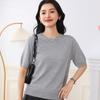 Spring Cotton Knit Short Sleeve Outerwear - Round Neck Loose Fit Solid Color Top