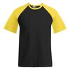 - Mouwtype: Mouwen met contrasterend patroon, raglanmodel, korte mouwen.